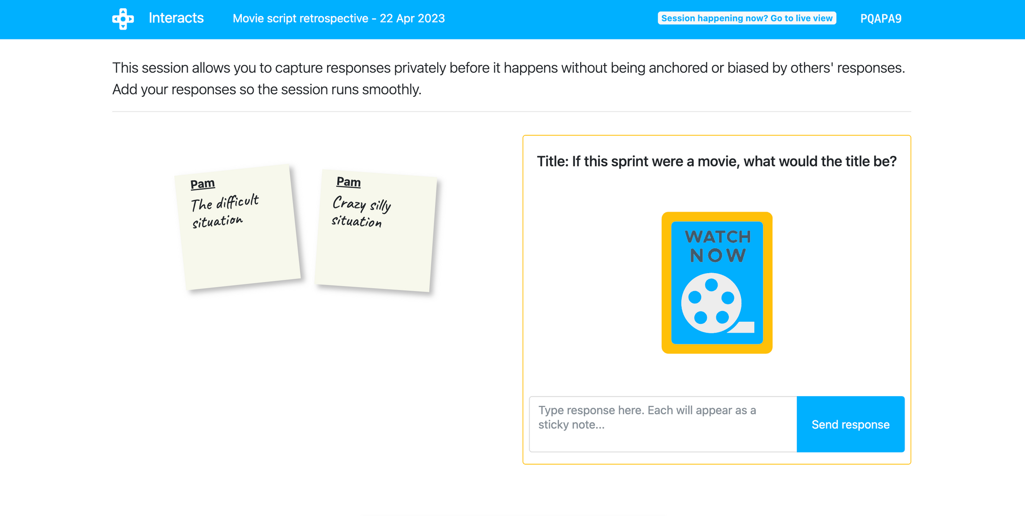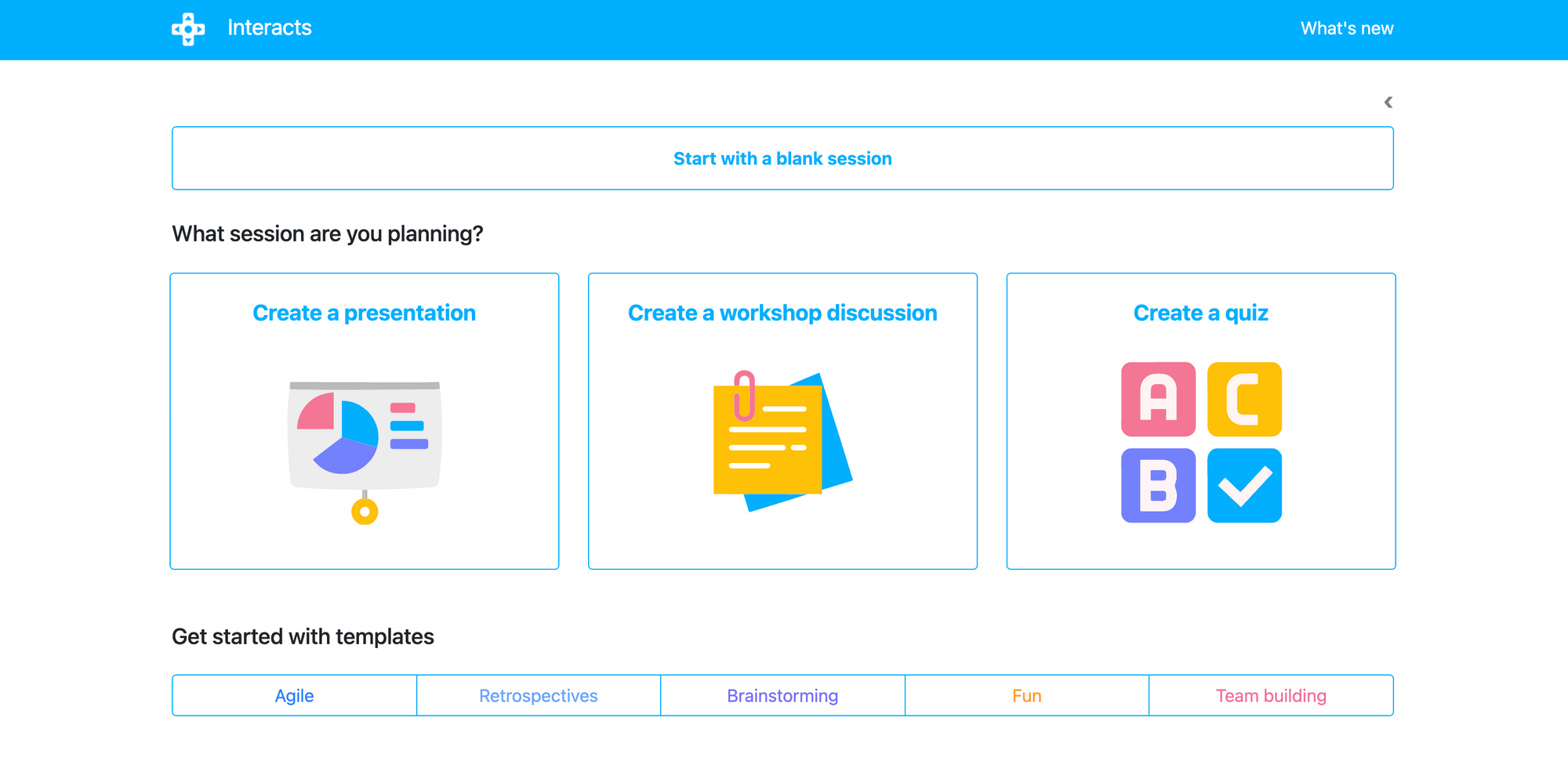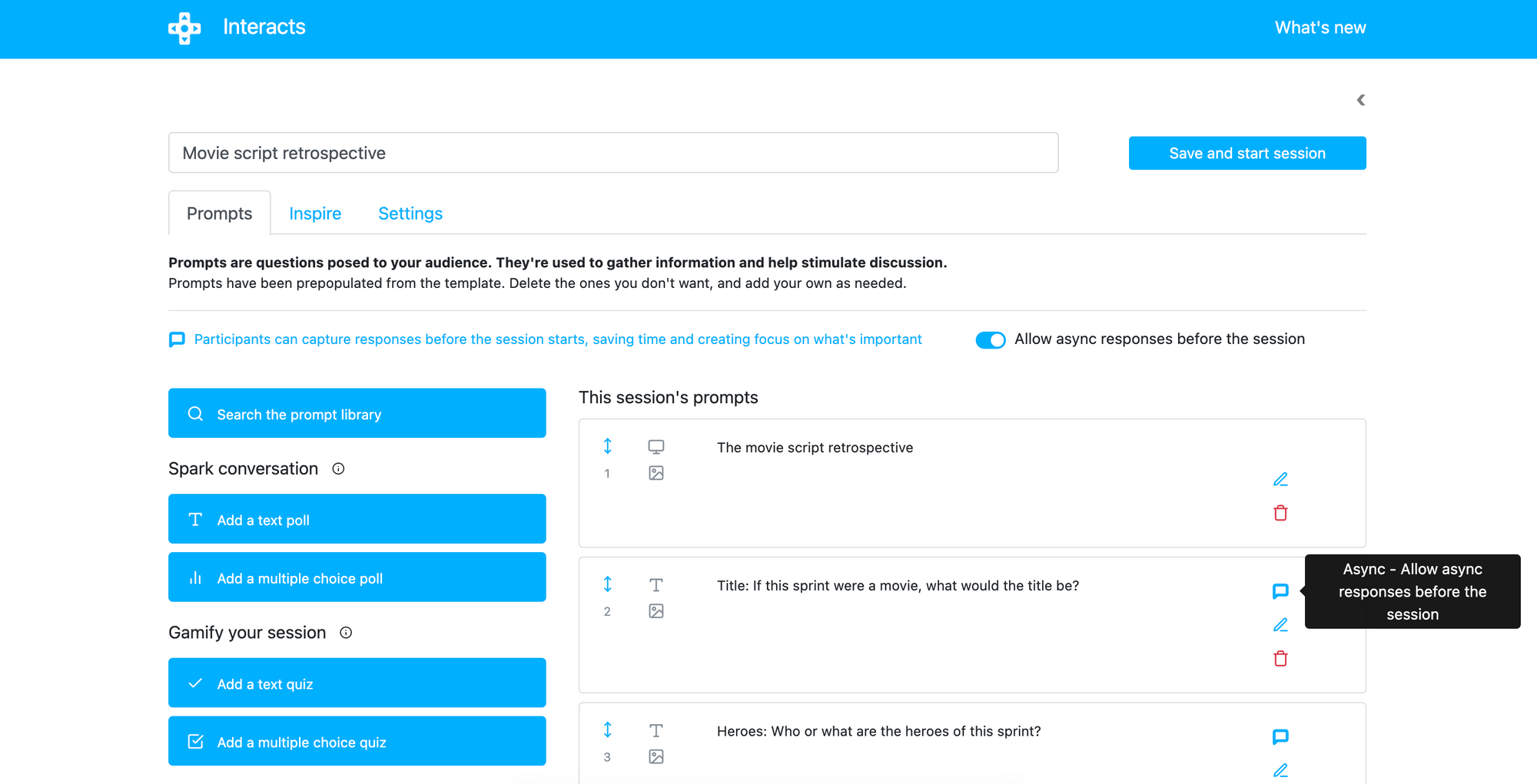 Interacts lets you create asynchronous sessions for agile activities, retrospectives, brainstorming, team building, and more.