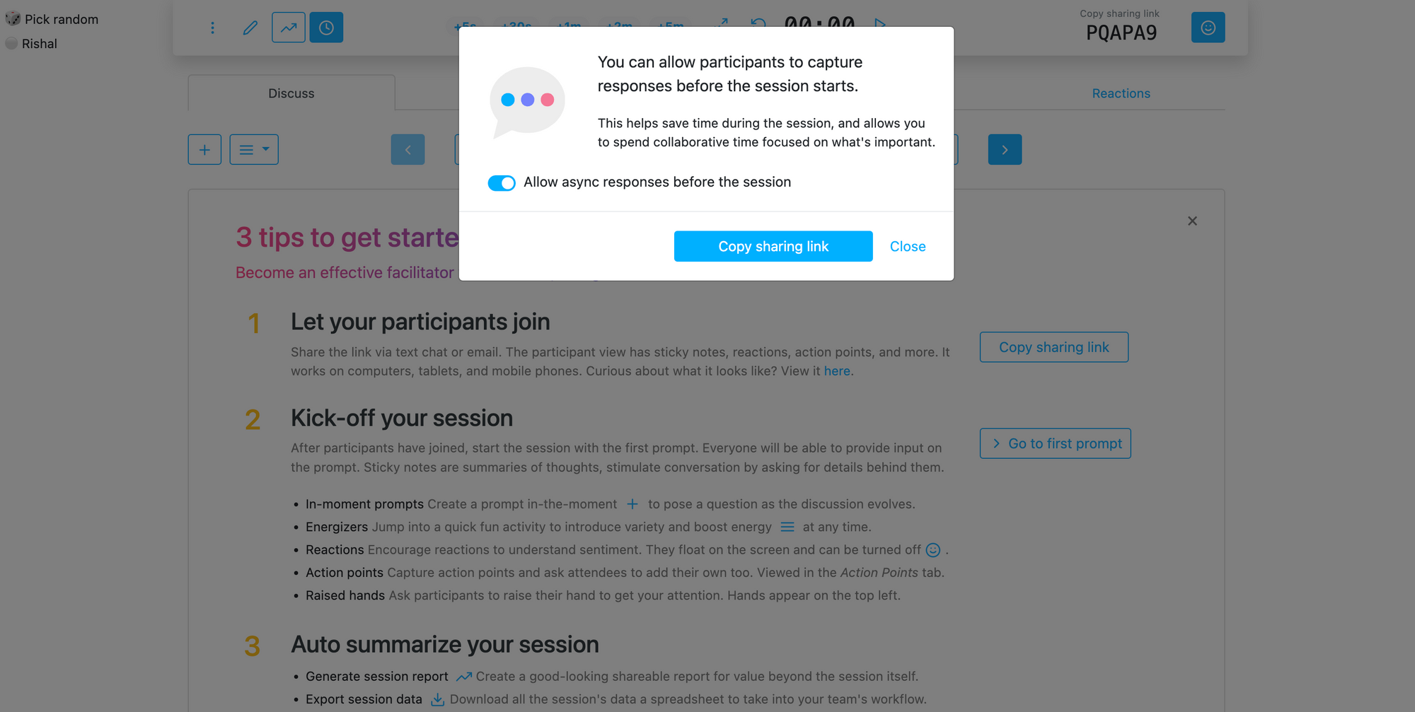Start the session, and share the link with your group